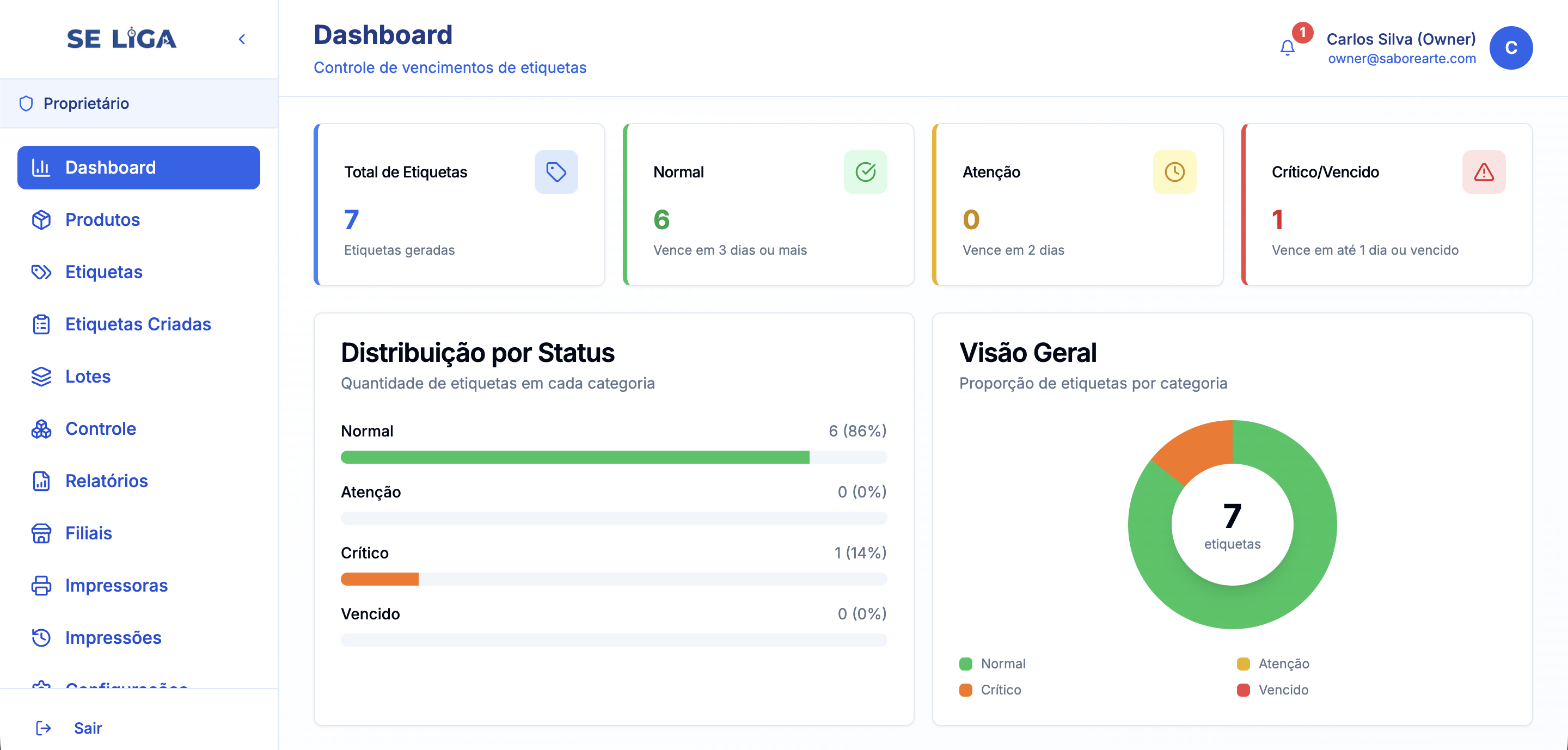 O SeLiga é o sistema da NinxSystem para controlar validades em restaurantes. As etiquetas são o método para garantir rastreio no dia a dia, com criação e envio em poucos cliques, monitoramento de filas e conexão segura entre filiais.