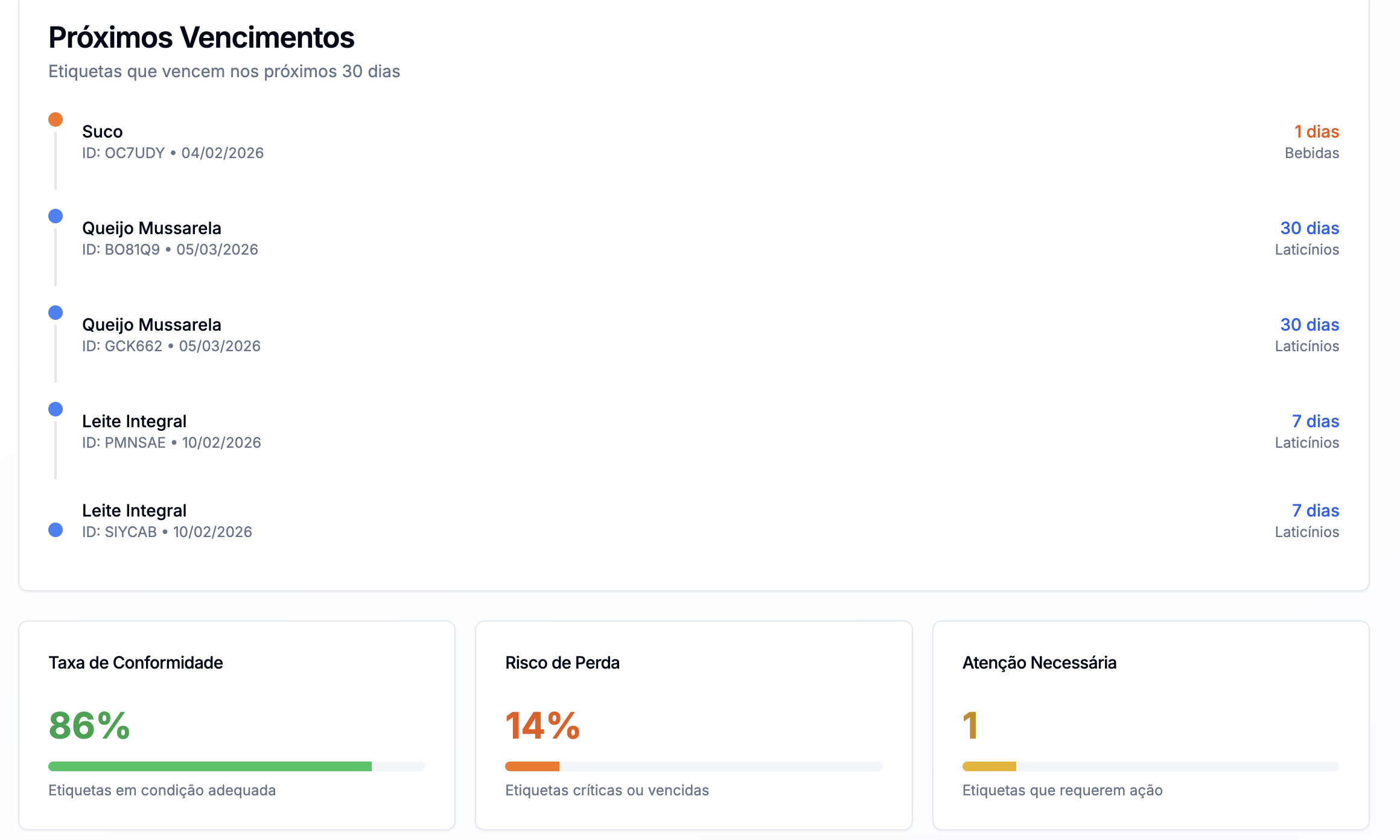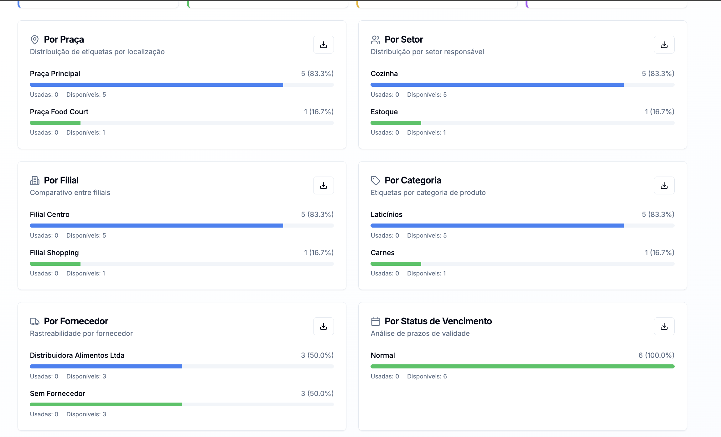 Dashboards e relatórios para acompanhar performance e uso das etiquetas.